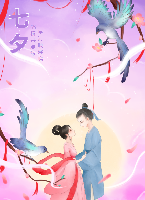 七夕節(jié),又稱七巧節(jié)、七姐節(jié)、女兒節(jié)、乞巧節(jié)等,是中國民間的傳統(tǒng)節(jié)日,由星宿崇拜衍化而來,為傳統(tǒng)意義上的七姐誕,因拜祭“七姐”活動在七月七晩上舉行,故名“七夕”。七夕佳節(jié)是一個令人心動的時刻,讓我們感受到愛的力量和浪漫的氛圍。七夕佳節(jié)象征著牽手相對的兩顆心,在這一天里,人們常常希望能與所愛之人共度美好時光。七夕佳節(jié)是一個美好的時刻,它為我們提供了一個特殊的機(jī)會來表達(dá)愛意。無論是通過一封情書、一束鮮花,還是一個溫馨的擁抱,用平平淡淡的方式去表達(dá)愛,都將成為珍貴的回憶和美好的開始。